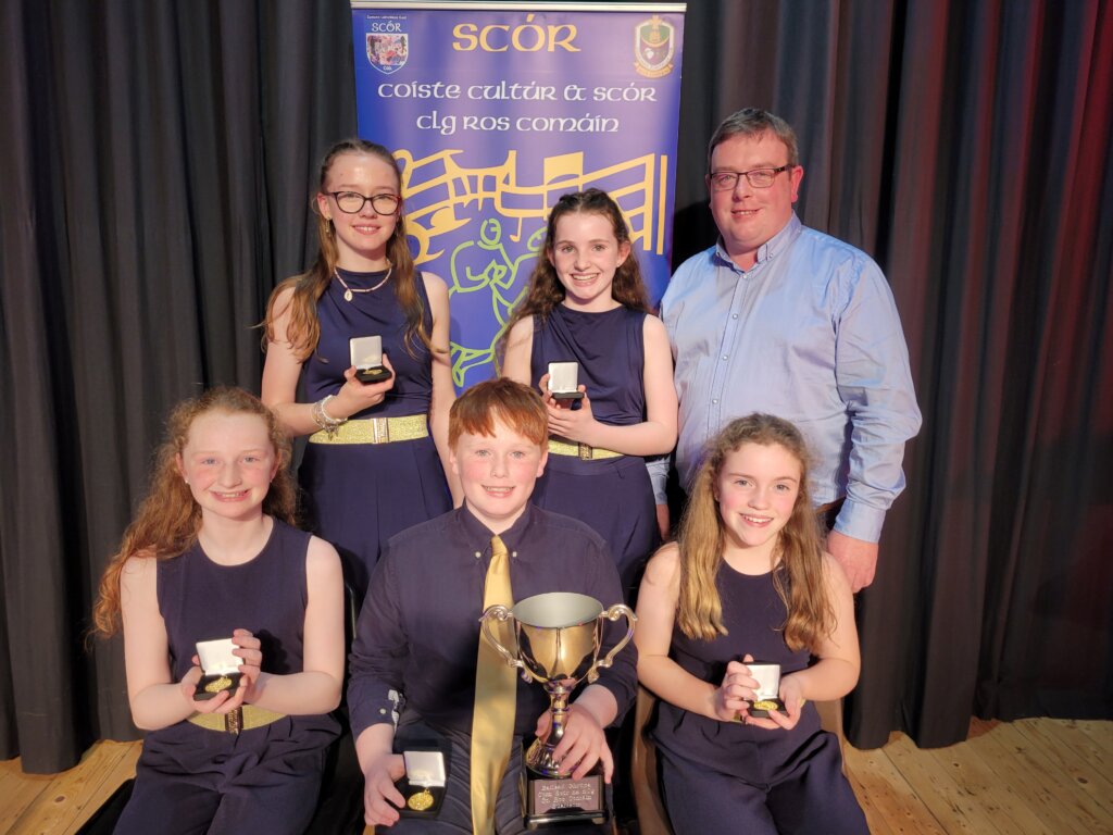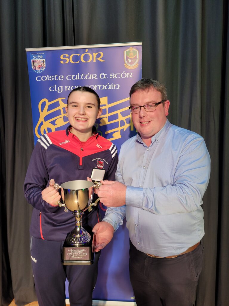 Coiste Scór agus Cultúir Ros Comáin were delighted to have Thomas Murray, Vice Chairman of Roscommon GAA County Board and member of the National Scór Committee, to present the winners with their trophies. Huge thank you to the Elphin Community Centre Committee, Northern Harps LGFA Committee for providing refreshments. Appreciation also goes to our excellent Sound Engineer and the adjudicators,who had an arduous task on the night.