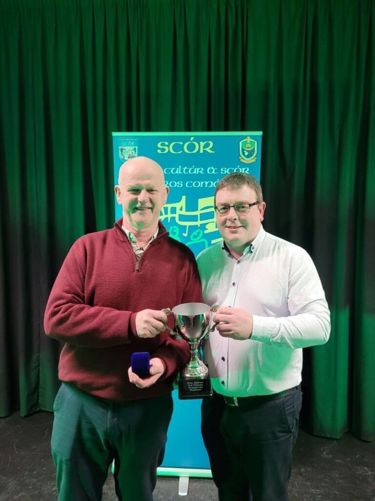 Thank you to our fantastic M.C. Cian Diffley Runaí Coiste Scór Ros Comáin, to Adrian McDermot (sound) and the fantastic Kilmurry Hall for the welcome to their beautiful facility. Winners were presented with their cups by Cathaoirleach GLG Ros Comáin, Tom Murray.
